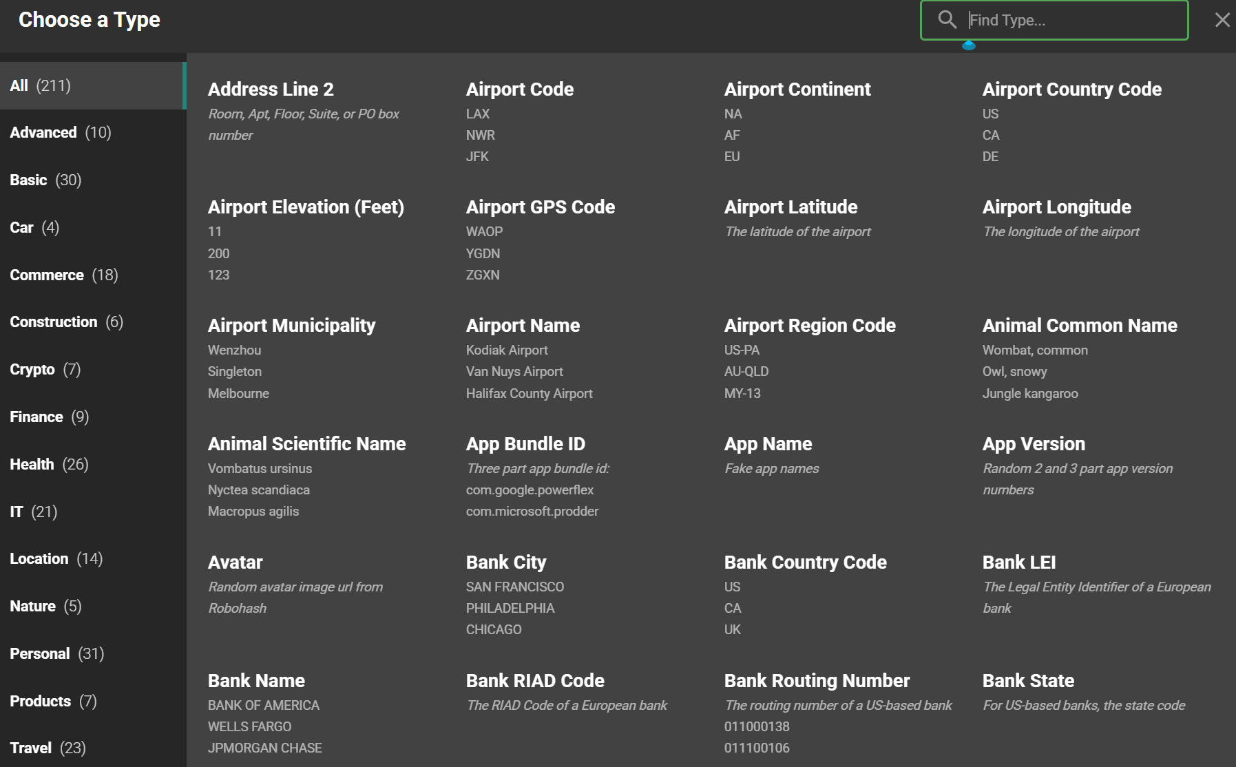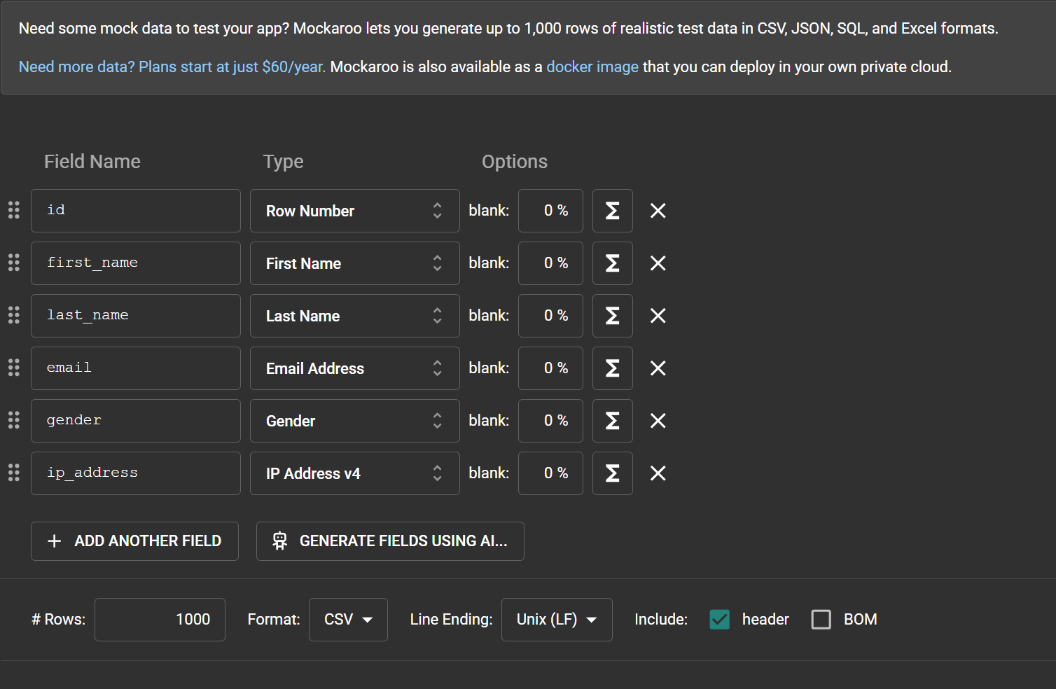Here are three sources, including Gemini, that I like to use for quick mock data: