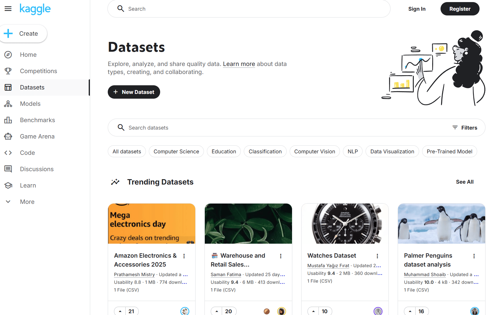 If you’re looking for something more specific, Kaggle may be your better pick. They provide a ton of datasets for free, and it’s honestly overwhelming the amount of data over there.