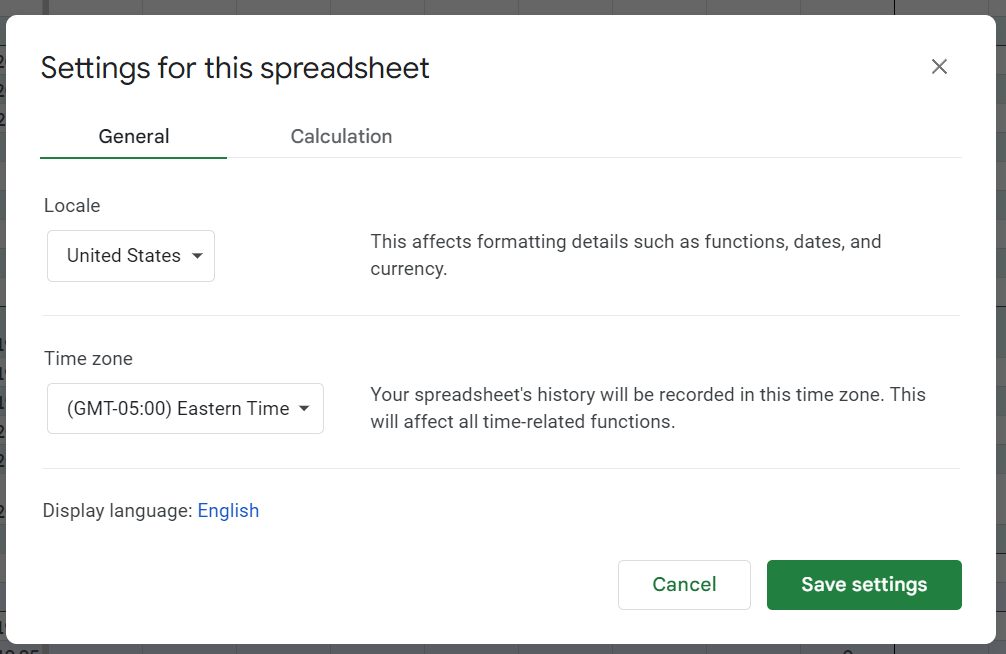 The first place is for the whole sheet. Just select File - Settings and you’ll see the dropdown selection for time zones.